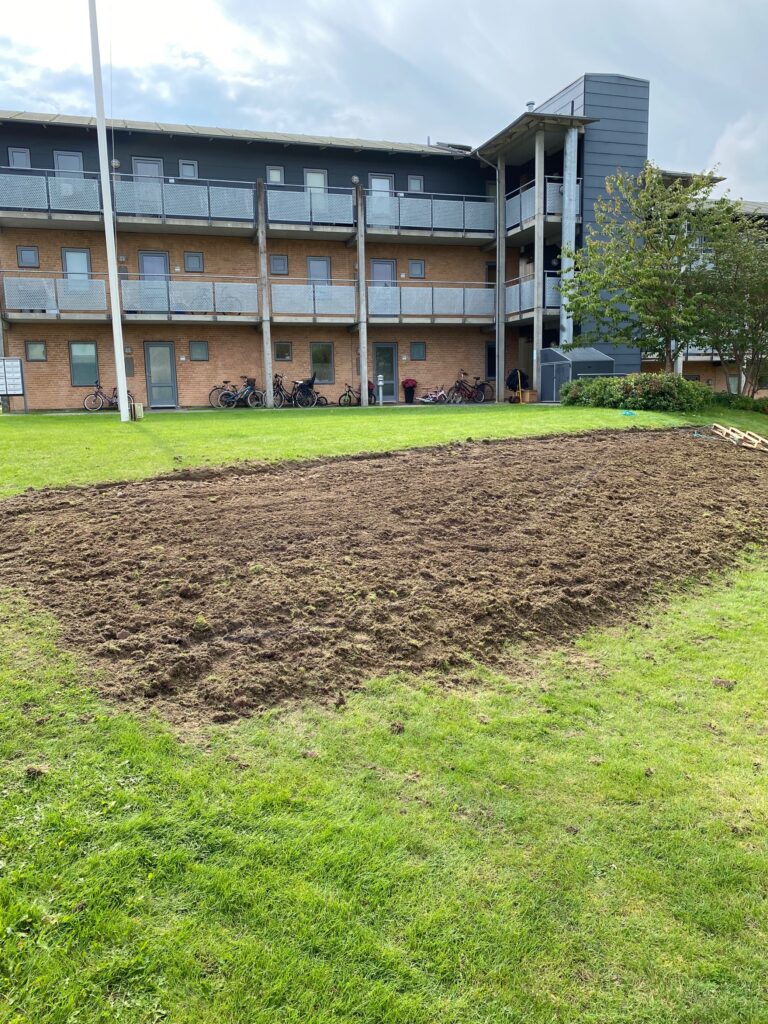 Vi har mange kvadratmeter græsplæne, som ligger ubrugt hen og vi bruger meget tid på at slå græsset i sommerhalvåret. Selvom vi og flere beboere holder af at området er nydeligt og velplejet, har flere også udtrykt ønske om ikke at skulle høre på vores græsslåmaskine så ofte.